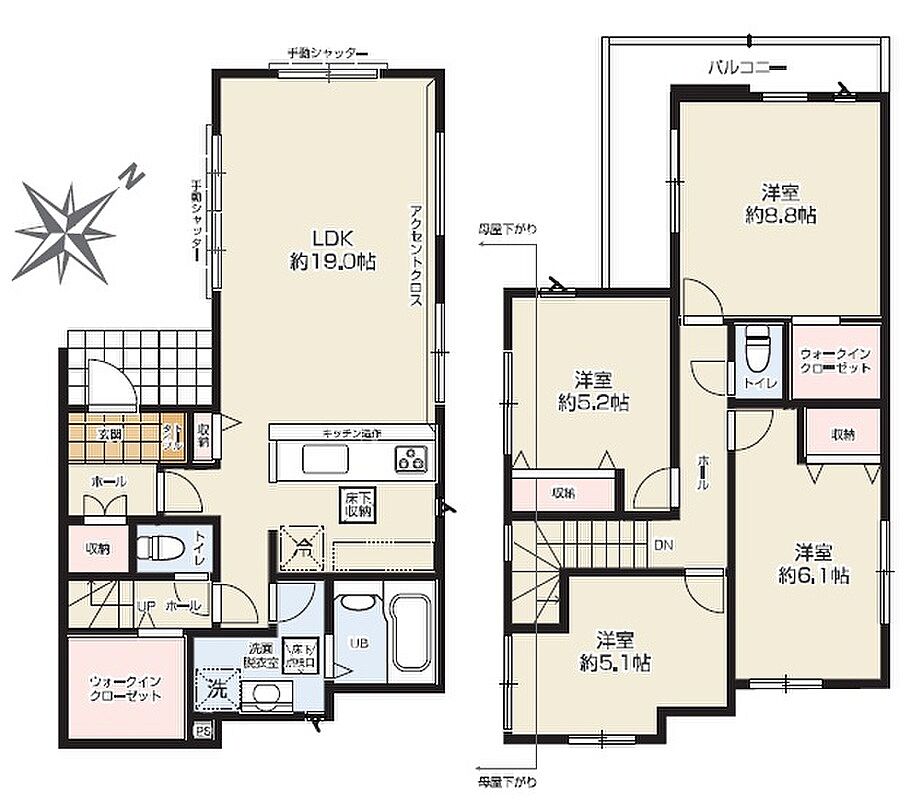 | 間取り | 2LDK+S(納戸)・4LDK | 建物構造 | 木造アスファルトシングル葺2階建 |