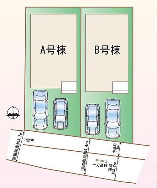 | 駐車場 | 2台 | 道路の幅員 | 道路幅:3.7m~4.4m、アスファルト舗装、南側公道 |