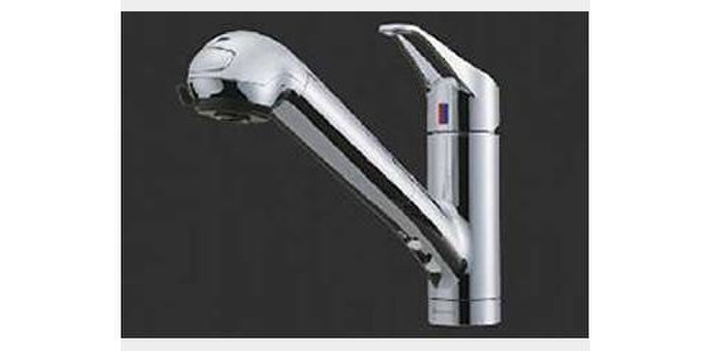 ■キッチンの水栓は、いつでも美味しい水が飲める浄水器内蔵型。シングルレバーで、吐水・止水も温水の温度調整も簡単です。また、シンクの隅々までラクに流すことができるシャワー機能も装備しています(同仕様)