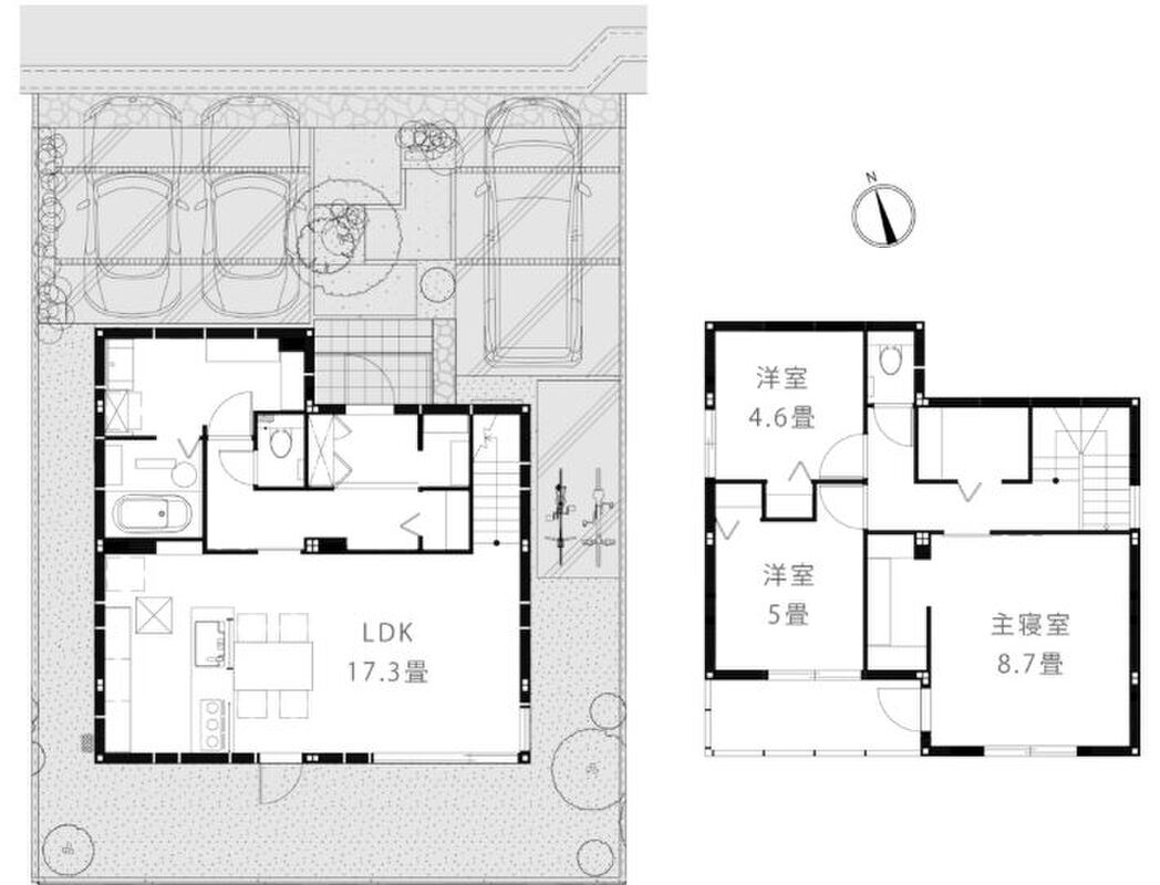 | 駐車場 | 2台 ~ 3台 | 道路の幅員 | 北側6m |