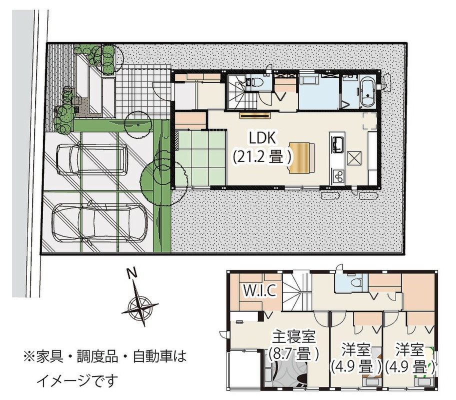 - ※完成予想図やCG合成画像は、門塀・植栽・庭・外観等、実際とは多少異なる場合があります。