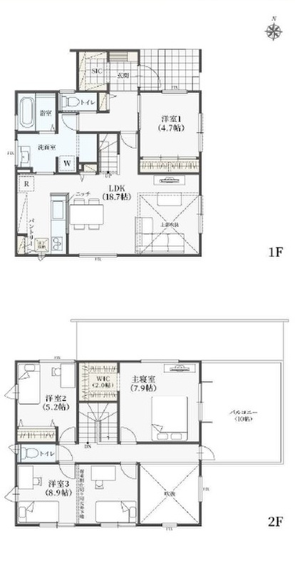 | 間取り | 4LDK+パントリー+ファミクロ+ウッドデッキ+WIC+吹き抜け天井+バルコニー | 建物構造 | 木造2階建 |