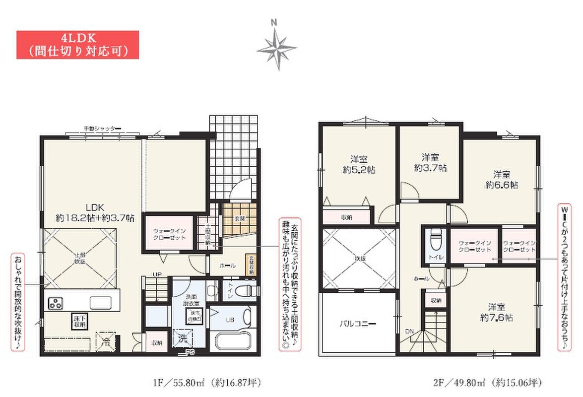 - 4LDK+土間収納+WIC+吹き抜け天井+バルコニー