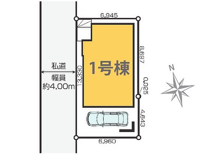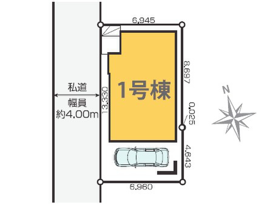 | 駐車場 | 1台 | 道路の幅員 | 北西側私道4m |