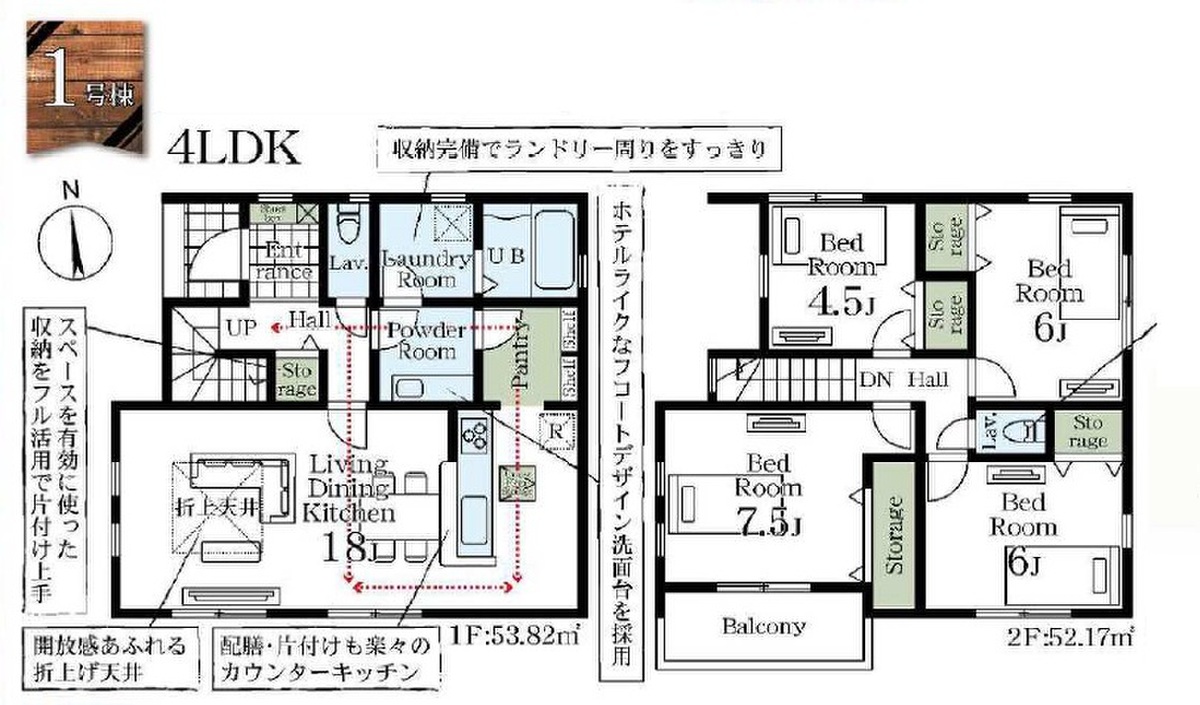 | 建物面積 | 91.09m2(1、2号棟) | 土地面積 | 172.32m2(1、2号棟) |