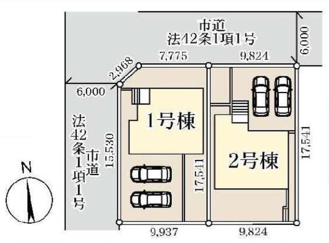 | 駐車場 | 3台 | 道路の幅員 | 北側公道約6m、西側公道約6m |