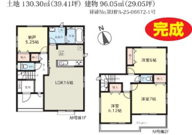 M区画 間取り 4LDK 価格 3590万円 建物面積 96.05m2 土地面積 130.30m2