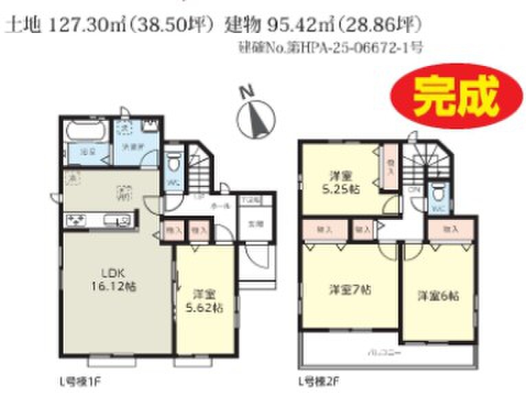 L号棟 間取り 4LDK 価格 3590万円 建物面積 95.24m2 土地面積 127.30m2 -