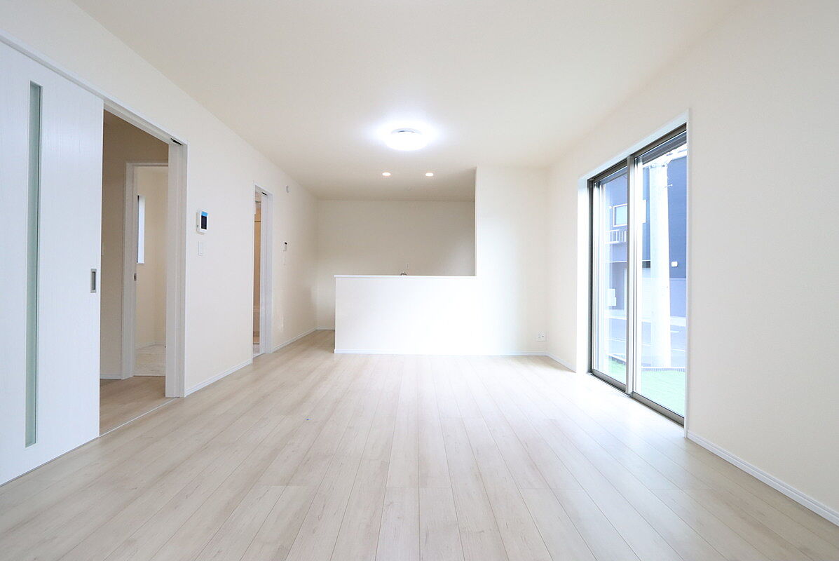 リビングに隣接する個室に段差がない間取ですので、引き戸を開け放...