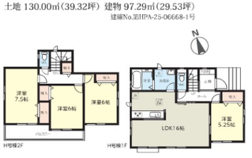 H号棟 間取り 4LDK 価格 3890万円 建物面積 97.29m2 土地面積 130.00m2 -