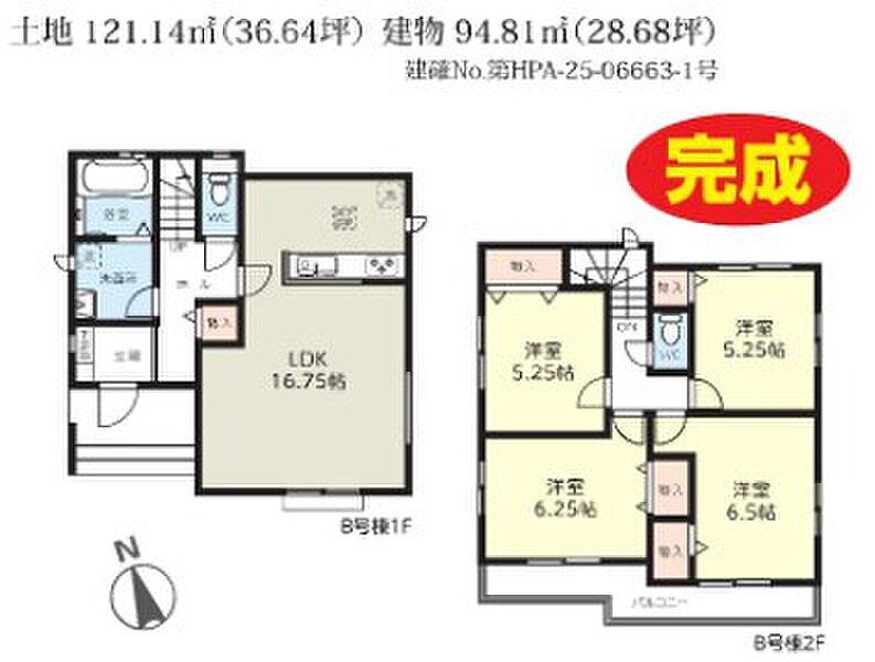 B号棟 間取り 4LDK 価格 3490万円 建物面積 94..81m2 土地面積 121.14m2 -