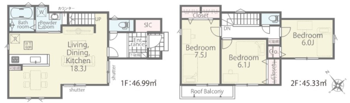 | 建物面積 | 83.01m2(1号棟)~92.32m2(2号棟) | 土地面積 | 89.05m2(2号棟)~104.02m2(1号棟) |