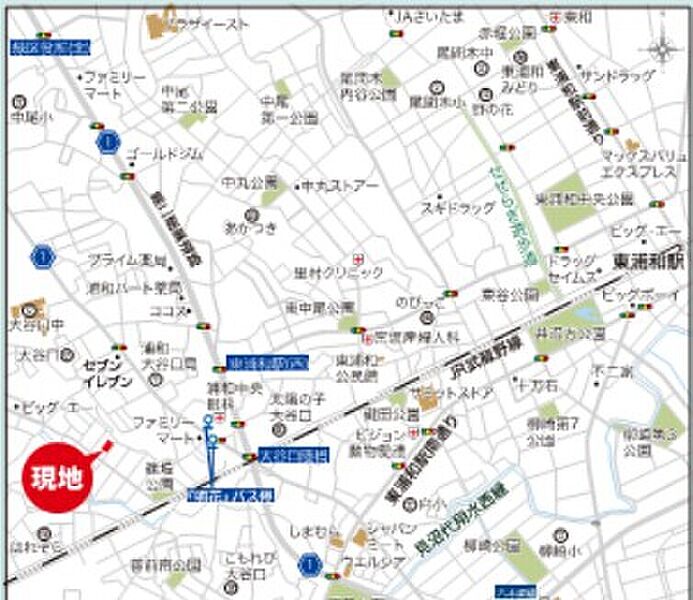 JR京浜東北・根岸線「浦和」駅 バス15分「明花」バス停 徒歩5分 JR武蔵野線「東浦和」駅 徒歩28分 JR京浜東北・根岸線「南浦和」駅 徒歩30分 |