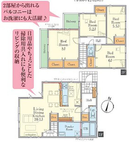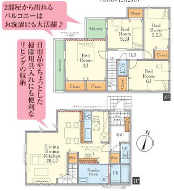 ■4LDK 建物面積107m2越 リビング20帖以上 スタディーカウンター 各部屋収納 トイレ2か所