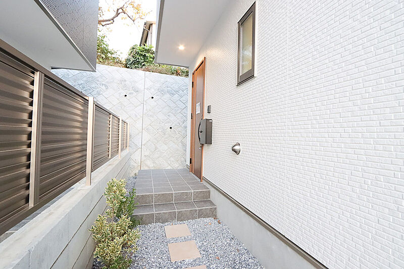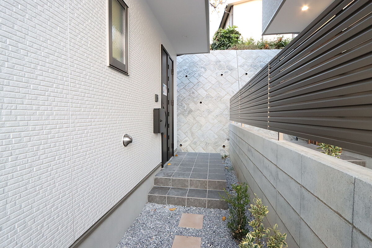 隣接住戸との関係に配慮した玄関アプローチ 2号棟