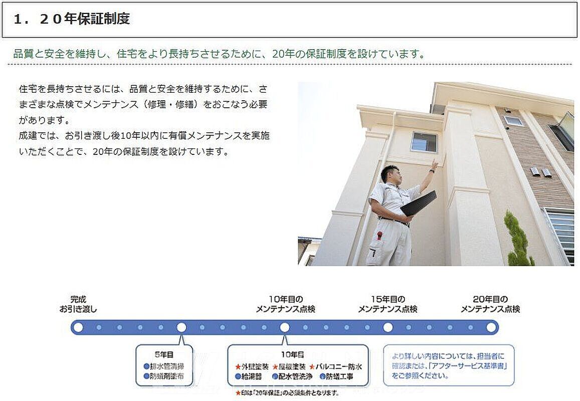 家族が集まるLDKは14.5~16帖の広さを誇り、リビング全体を見渡せる対面キッチンを採用しました。お料理をしながらご家族との会話が弾む、温かみのある空間デザインです。収納面も非常に充実しており、2階には季節の衣類や思い出の品をたっぷり保管できる「グルニエ(小屋裏収納)」を完備。全居室にクローゼットを備えているため、お部屋を常にスッキリと整えることができます。「20年保証」や「定期点検」など、安心のアフターサポート体制も整っており、末永く快適に住み続けられる工夫が随所に凝らされています。