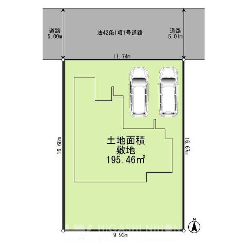 敷地195.46m2(59.12坪)の整形地に、家族の「広さ」を叶える建売プラン。並列2台駐車も可能で、来客時や2台持ちのご家庭にも嬉しい条件です。前面道路は幅員約5m(アスファルト舗装)で出し入れもスムーズ。第一種低層住居専用地域の落ち着いた住環境で、現地では陽当たり・風通し・街並みまでまとめてご確認いただけます。