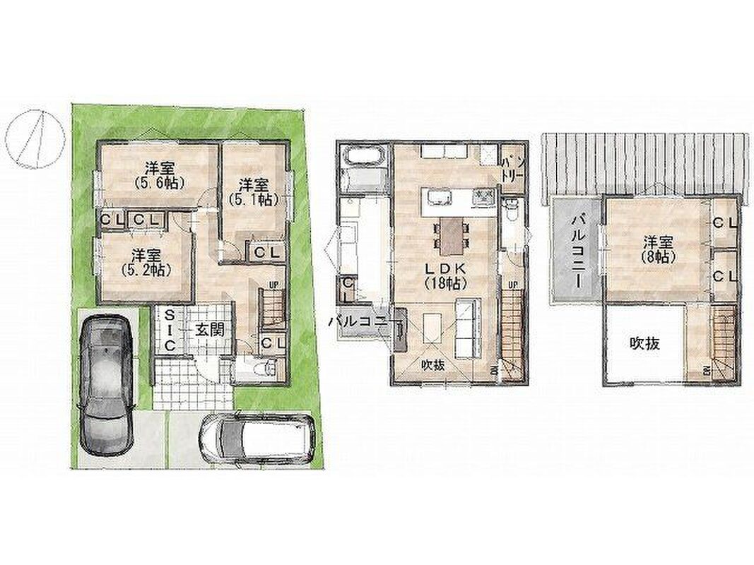 - ※完成予想図やCG合成画像は、門塀・植栽・庭・外観等、実際とは多少異なる場合があります。