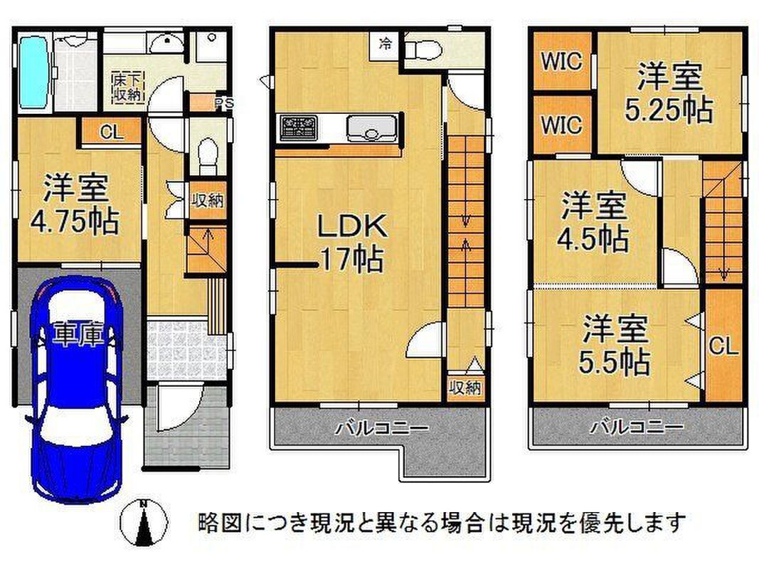 | 間取り | 3LDK- | 建物構造 | 木造3階建て |