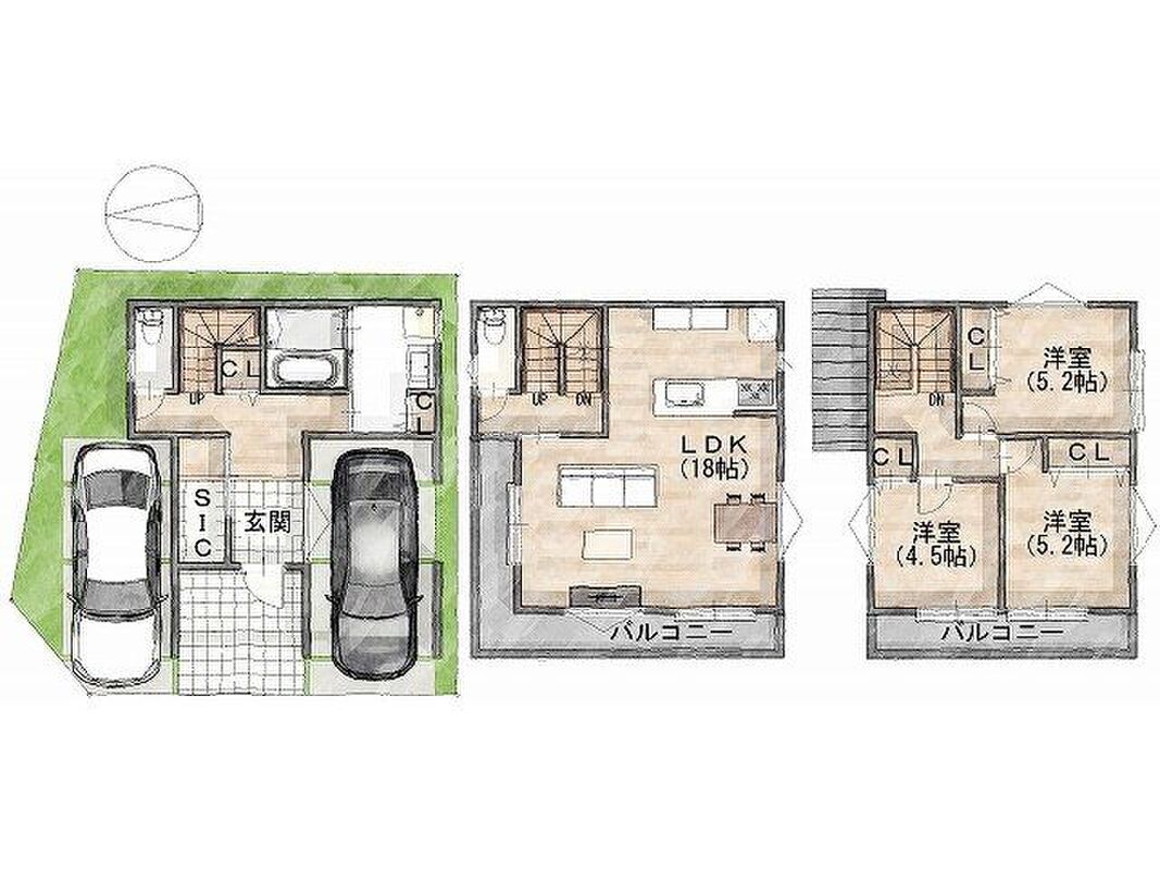 - ※完成予想図やCG合成画像は、門塀・植栽・庭・外観等、実際とは多少異なる場合があります。
