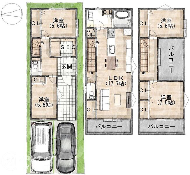- ※完成予想図やCG合成画像は、門塀・植栽・庭・外観等、実際とは多少異なる場合があります。