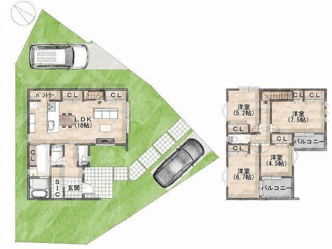 - ※完成予想図やCG合成画像は、門塀・植栽・庭・外観等、実際とは多少異なる場合があります。