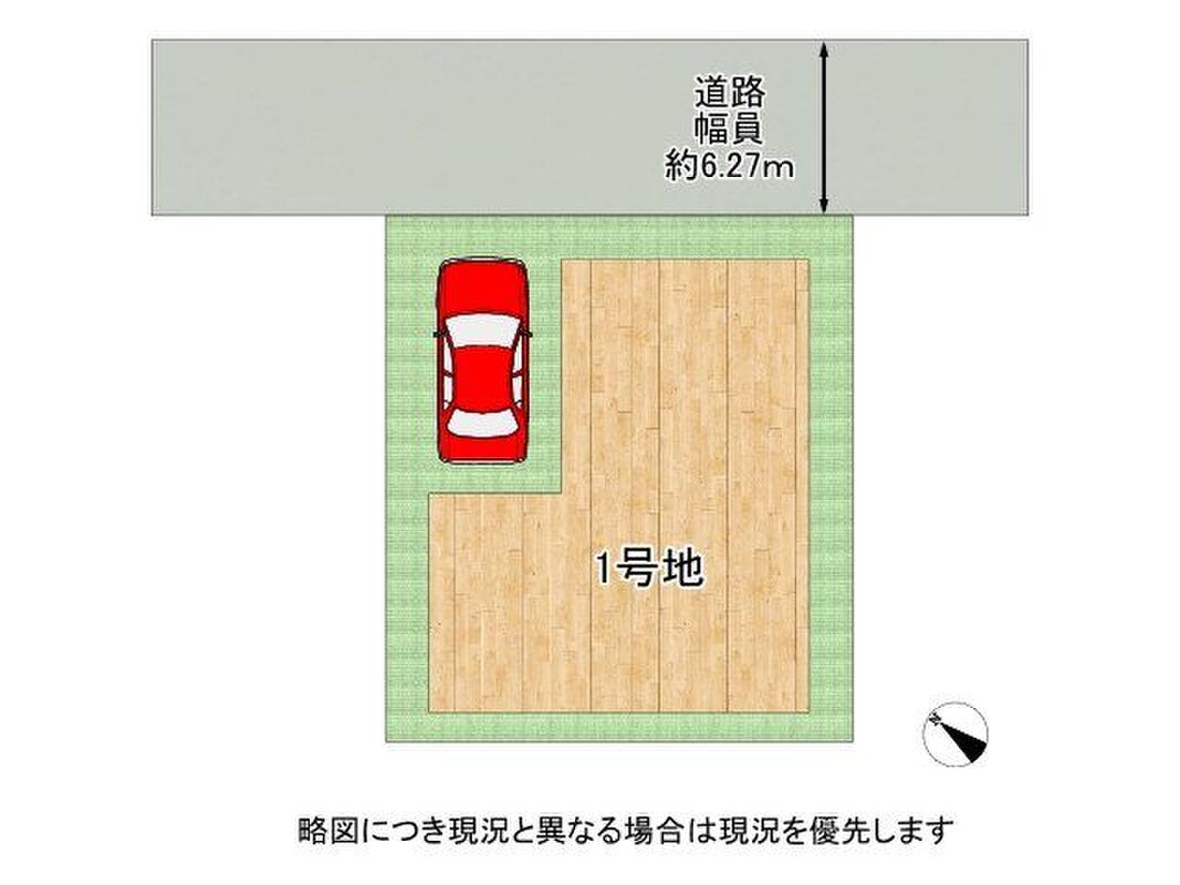 | 駐車場 | 駐車場有無(空有)料金(無料)台数(1台)構造(カースペース) | 道路の幅員 | 接道状態(二方道路)接道(1)(【方角】北東【幅員】6.2m【接面】9.5m) |