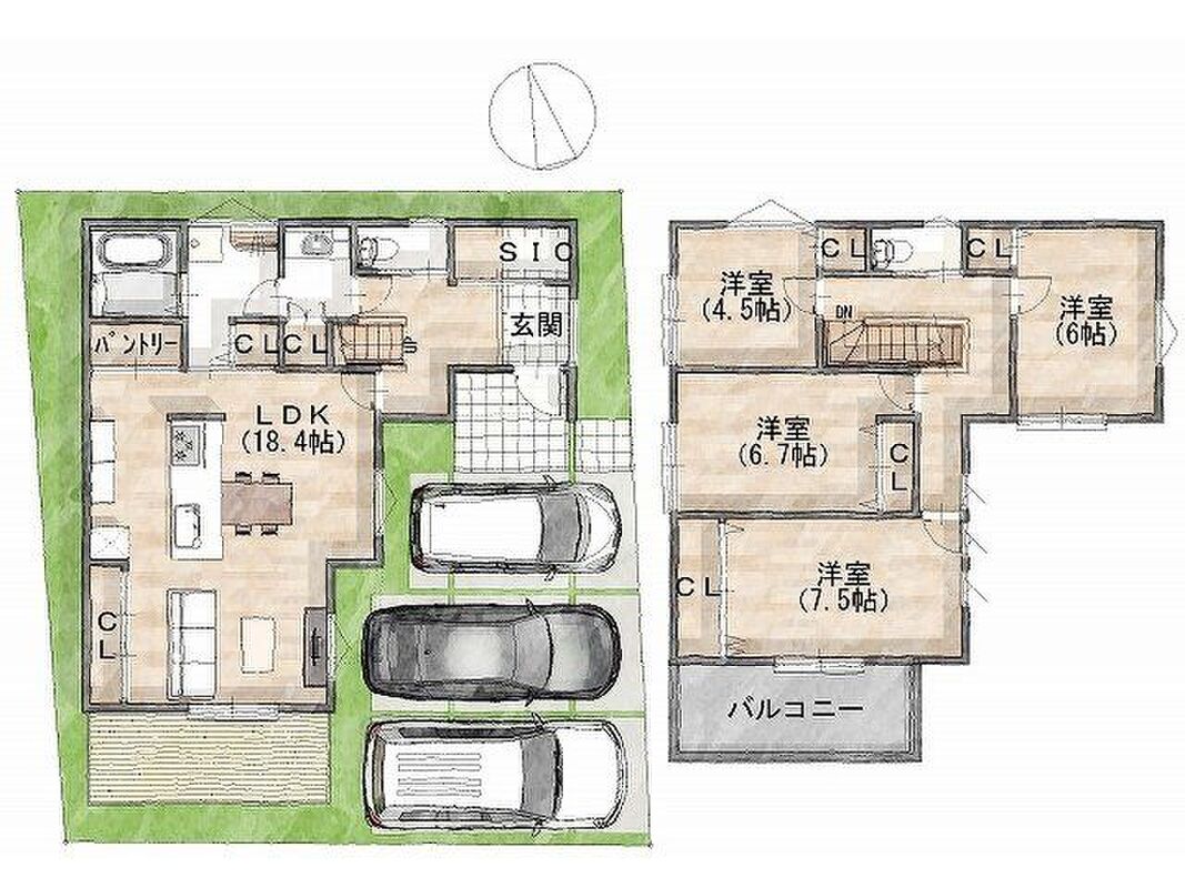 - ※完成予想図やCG合成画像は、門塀・植栽・庭・外観等、実際とは多少異なる場合があります。