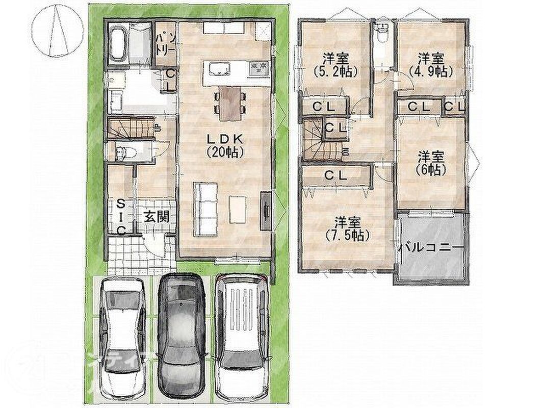 - ※完成予想図やCG合成画像は、門塀・植栽・庭・外観等、実際とは多少異なる場合があります。