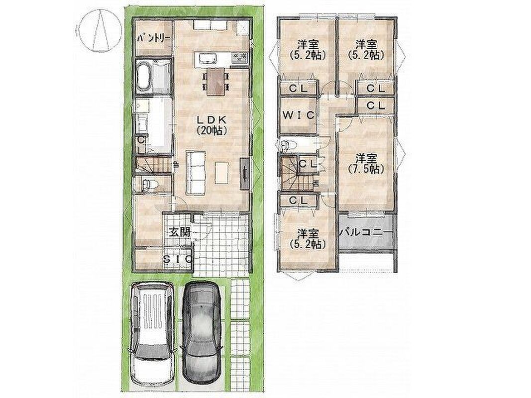 - ※完成予想図やCG合成画像は、門塀・植栽・庭・外観等、実際とは多少異なる場合があります。