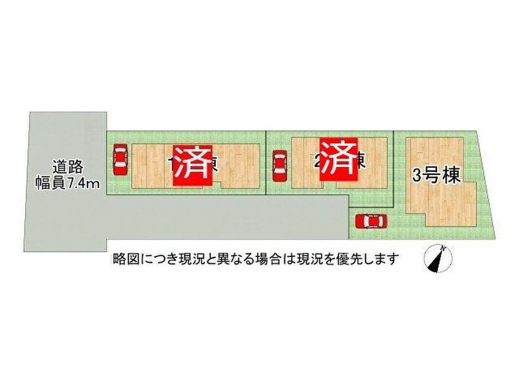 | 主たる設備の概要 | 電気/上水道/公営水道/下水道/本下水/都市ガス | 建築確認番号 | 第R07SHC101201号他 |