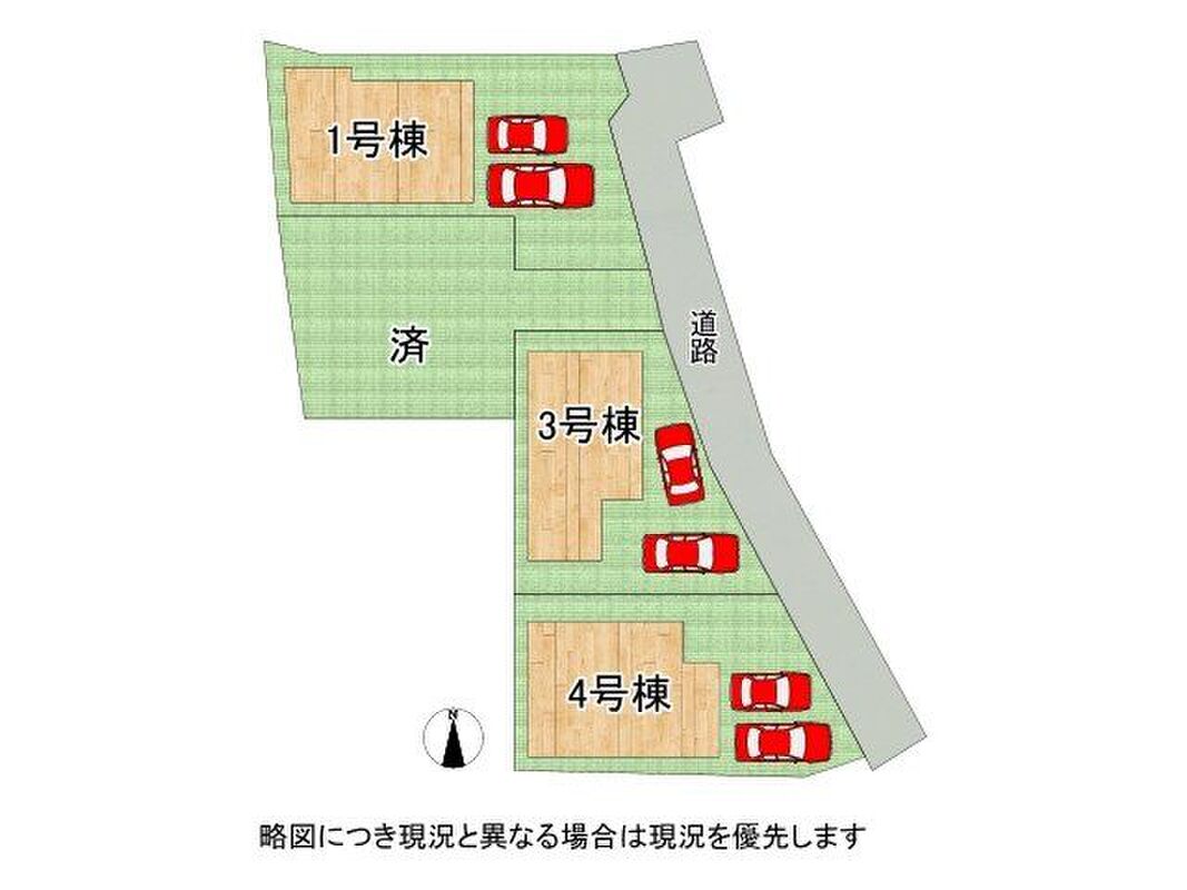 | 建物面積 | 97.29m2・101.02m2(実測) | 土地面積 | 113.88m2~126.96m2(公簿) |