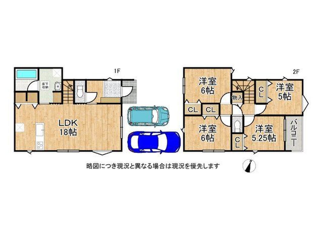 特徴・毎日の車通勤でも安心カースペース2台付・浴室乾燥機付なので、雨の日や花粉が気になる季節も部屋干しできます・「乾太くん」があるからお洗濯も楽々・リビング18帖以上!広々快適スペース