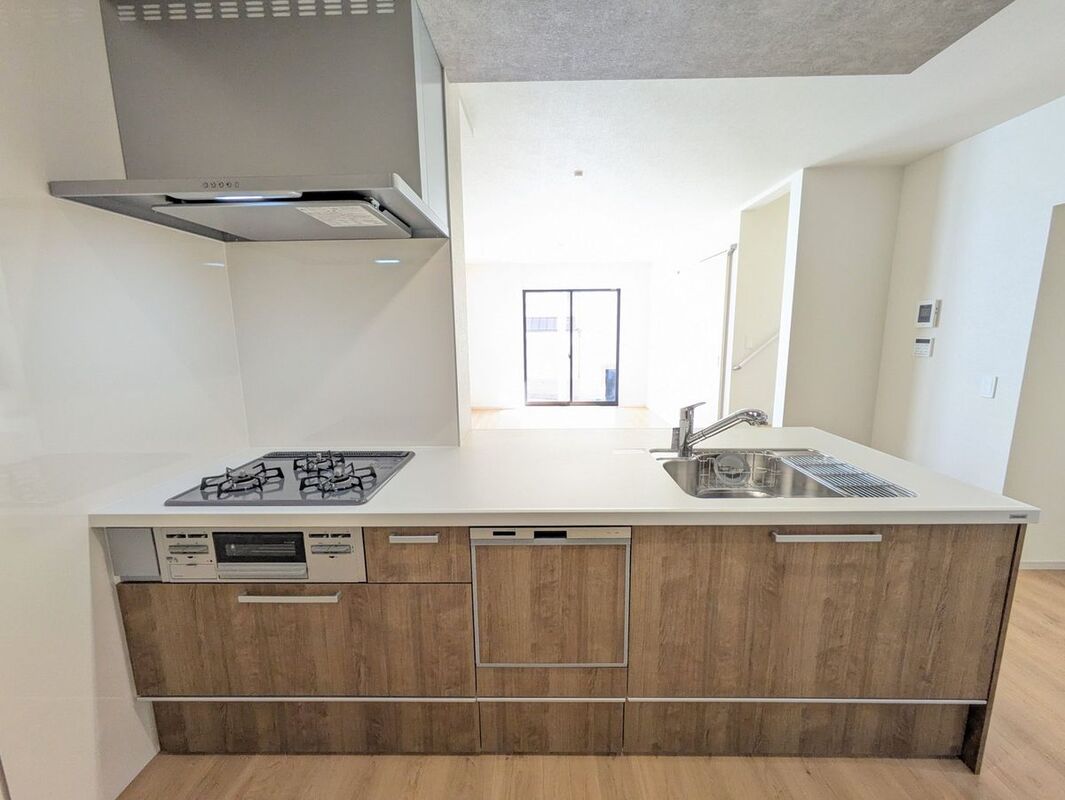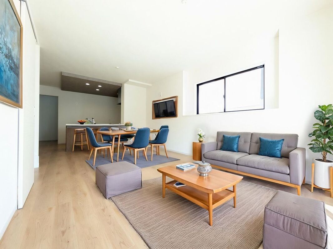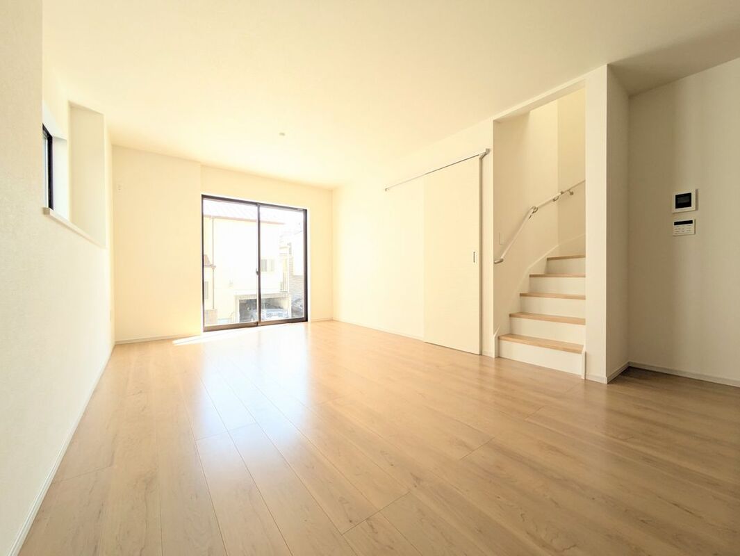 特徴・LDが見渡せるフラットキッチン・家族が顔を合わせるリビング階段設計・食洗機や浴室乾燥機など生活が快適になる設備が整っております・普段使わない荷物もスッキリ片付く各居室収納