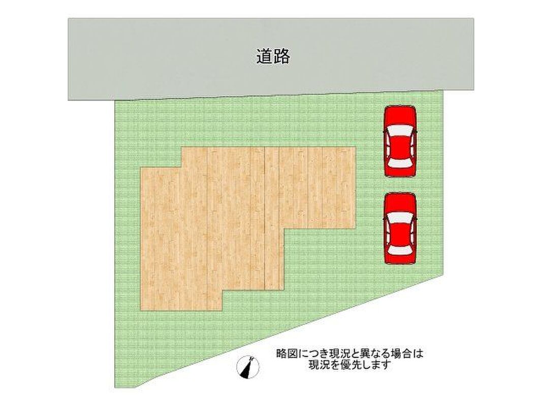 | 駐車場 | 駐車場有無(空有)料金(無料)台数(2台)構造(カースペース) | 道路の幅員 | 接道状態(一方道路)接道(1)(公道【方角】北【幅員】5.4m)セットバック無 |