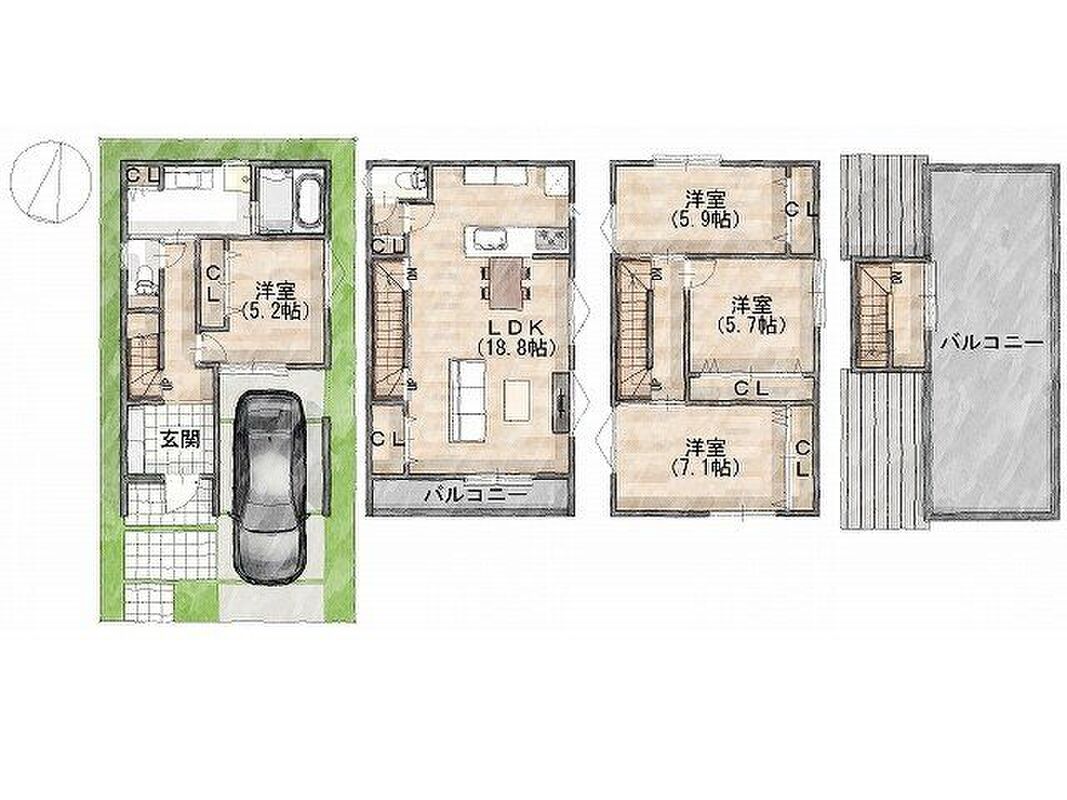 | 間取り | 4LDK- | 建物構造 | 木造3階建て |