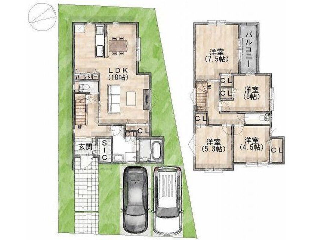 - ※完成予想図やCG合成画像は、門塀・植栽・庭・外観等、実際とは多少異なる場合があります。