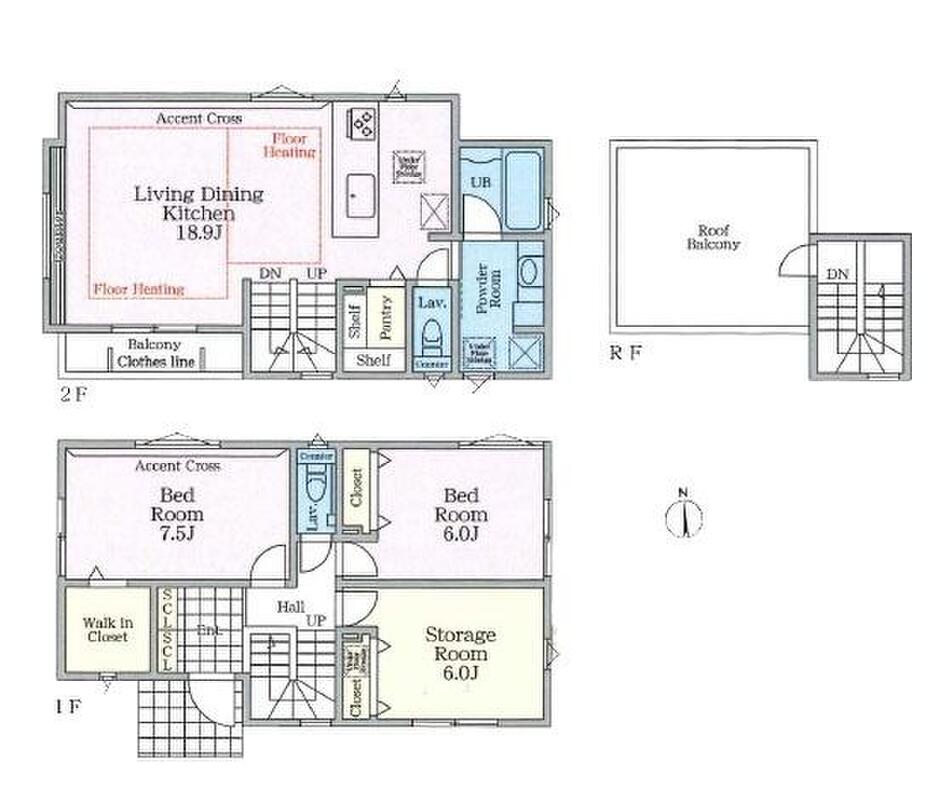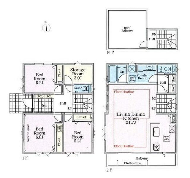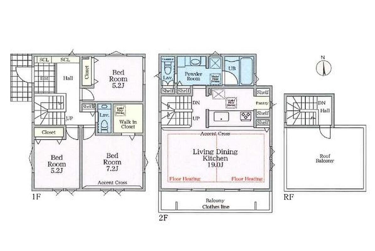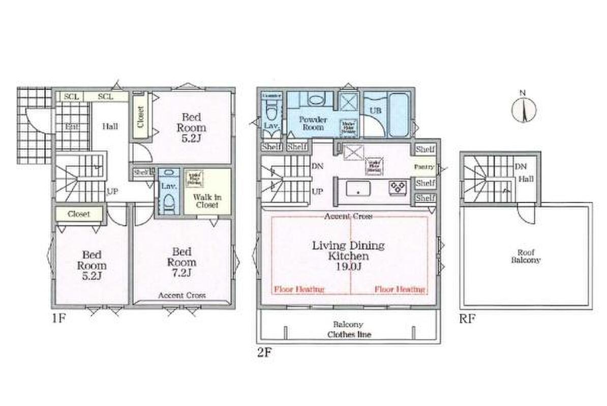 | 建物面積 | 101.28m2(3号棟)~108.51m2(2号棟) | 土地面積 | 140.44m2(1号棟)~143.37m2(3号棟) |