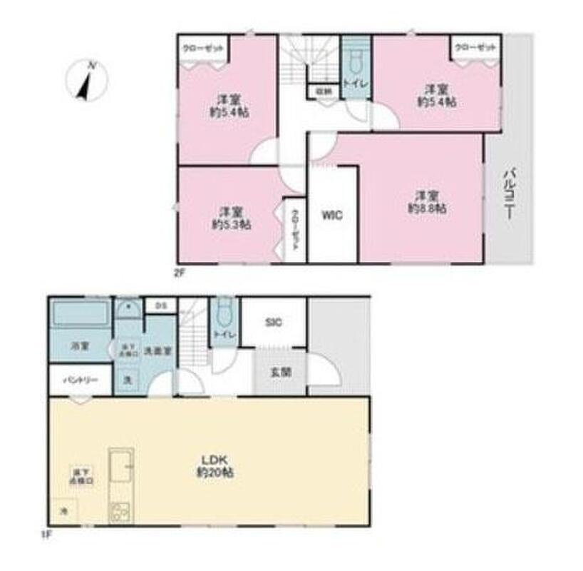 | 建物面積 | 109.3m2 | 土地面積 | 154.97m2(2号棟)~155.12m2(1号棟) |