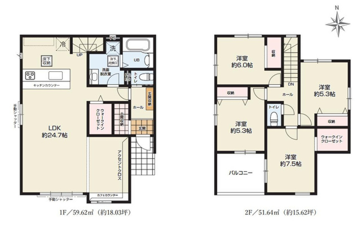 - ※完成予想図やCG合成画像は、門塀・植栽・庭・外観等、実際とは多少異なる場合があります。