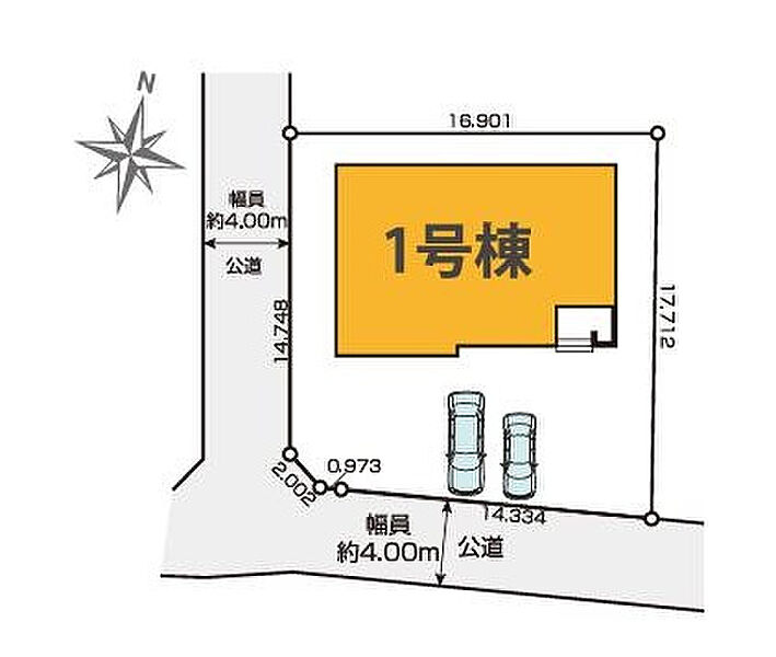 | 駐車場 | 2台 | 道路の幅員 | 南側4.0m公道、西側4.0m公道 |