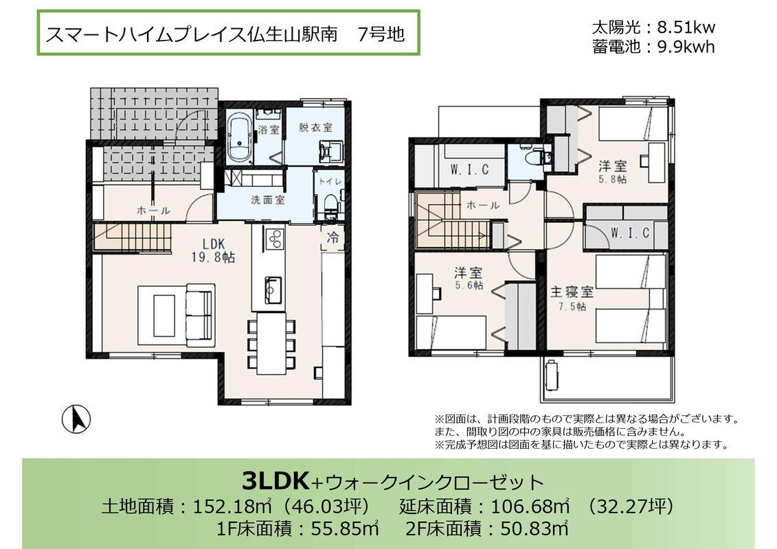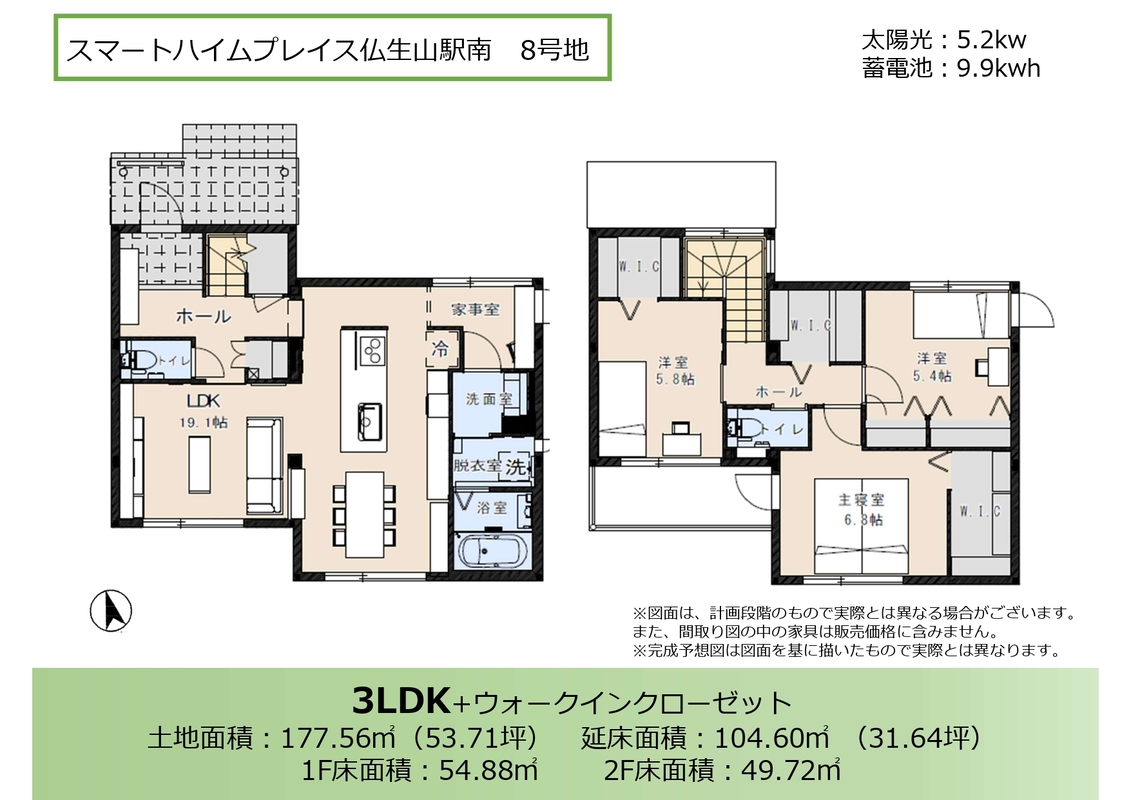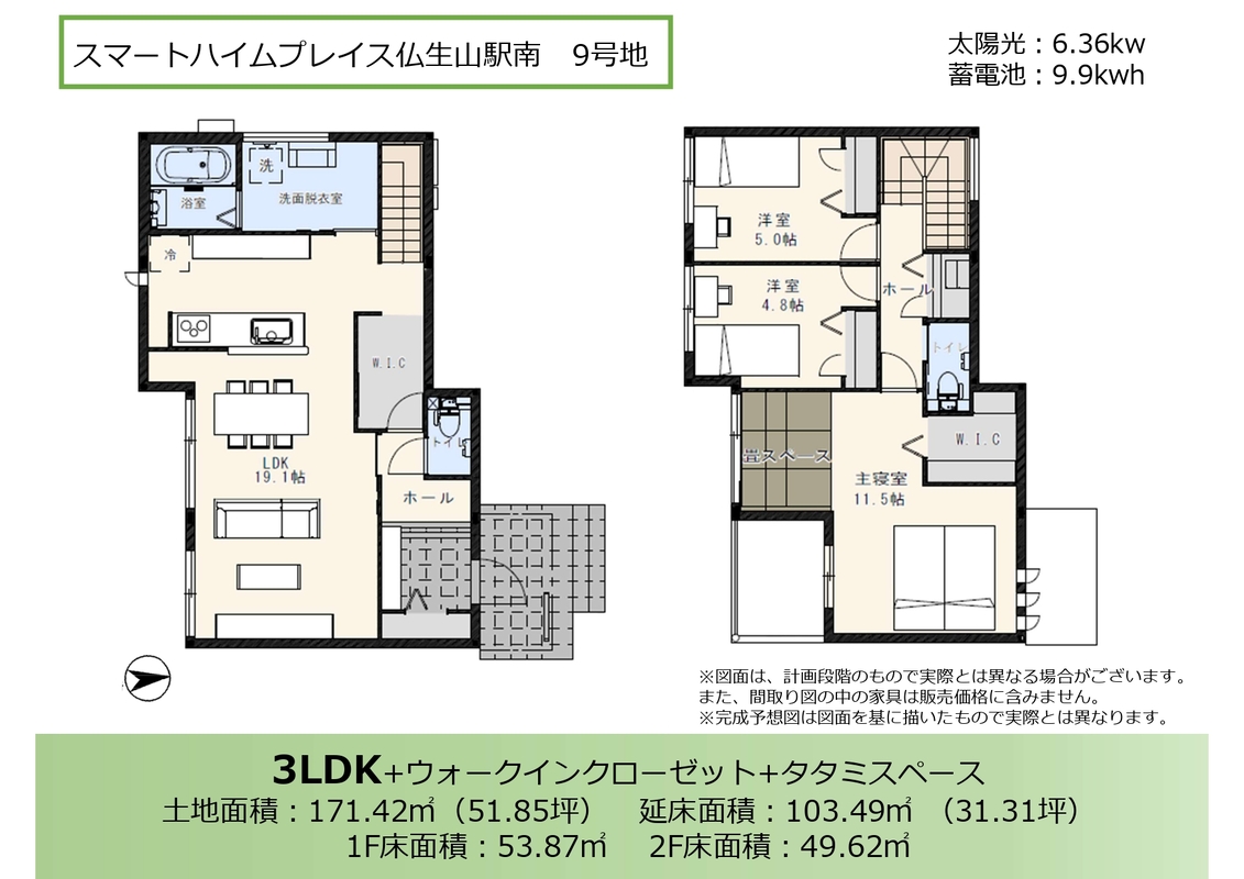 - ※完成予想図やCG合成画像は、門塀・植栽・庭・外観等、実際とは多少異なる場合があります。