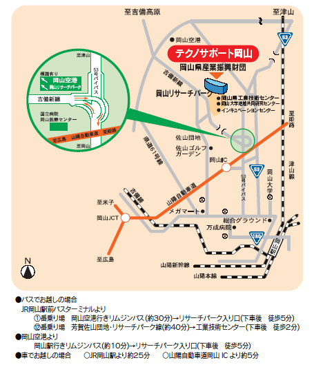 JR吉備線「備前一宮」駅 車で6.4km 約17分 JR山陽本線「岡山」駅 中鉄バス28分 上芳賀停 徒歩2分 |