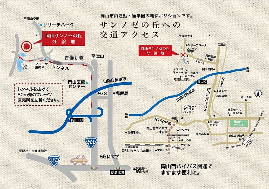 JR山陽本線「岡山」駅 上芳賀停 徒歩5分 JR吉備線「備前一宮」駅 徒歩17分~20分 車で3.4 JR山陽本線「岡山」駅 徒歩22分~30分 車で6.9 |