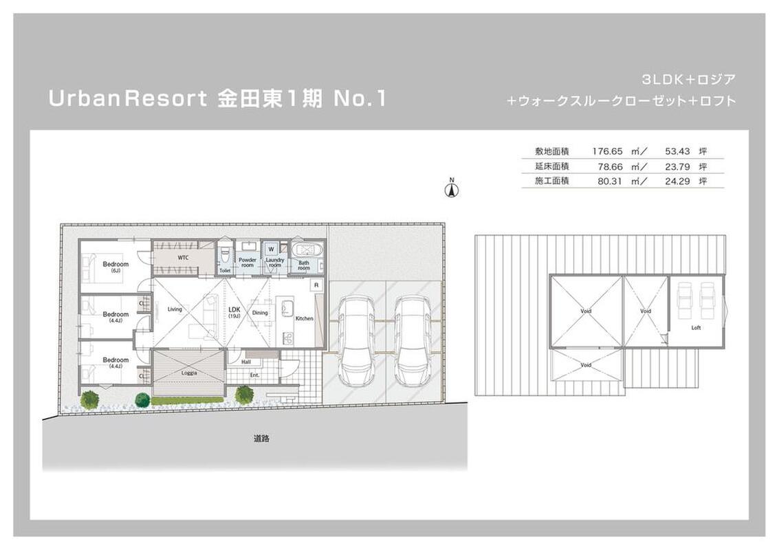 | 建物面積 | 78.66m2~82.81m2 | 土地面積 | 176.65m2 |