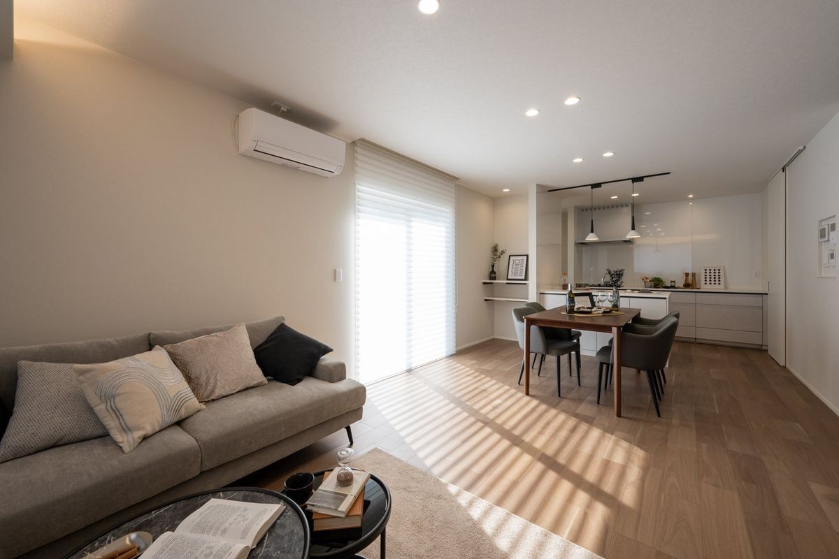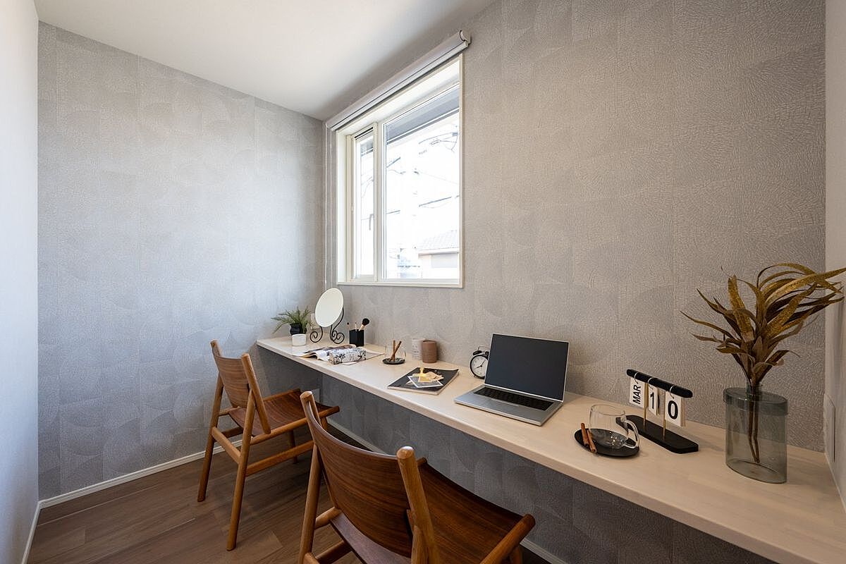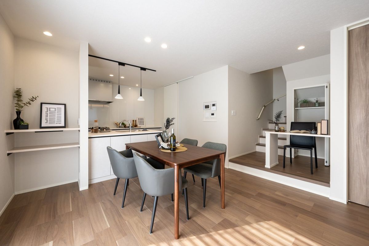リビング・ダイニング・キッチンがひと続きの間取りで、家族のつながりを感じやすい設計。生活動線もスムーズで毎日の暮らしが快適です。LDKや主寝室にはワークスペースがあり、テレワークやお子様の宿題スペース、趣味のスペースなど様々な用途にご活用いただけます。