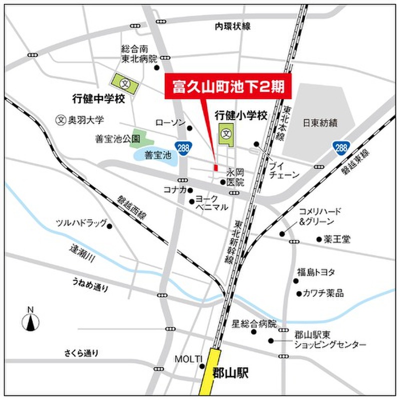 福島交通「三春街道入口」バス停 徒歩3分 JR東北本線「郡山」駅 約2.2km |
