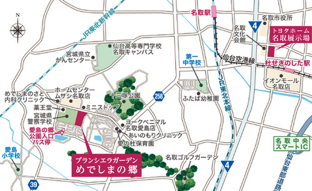 JR東北本線「名取」駅 車で10分~11分 |