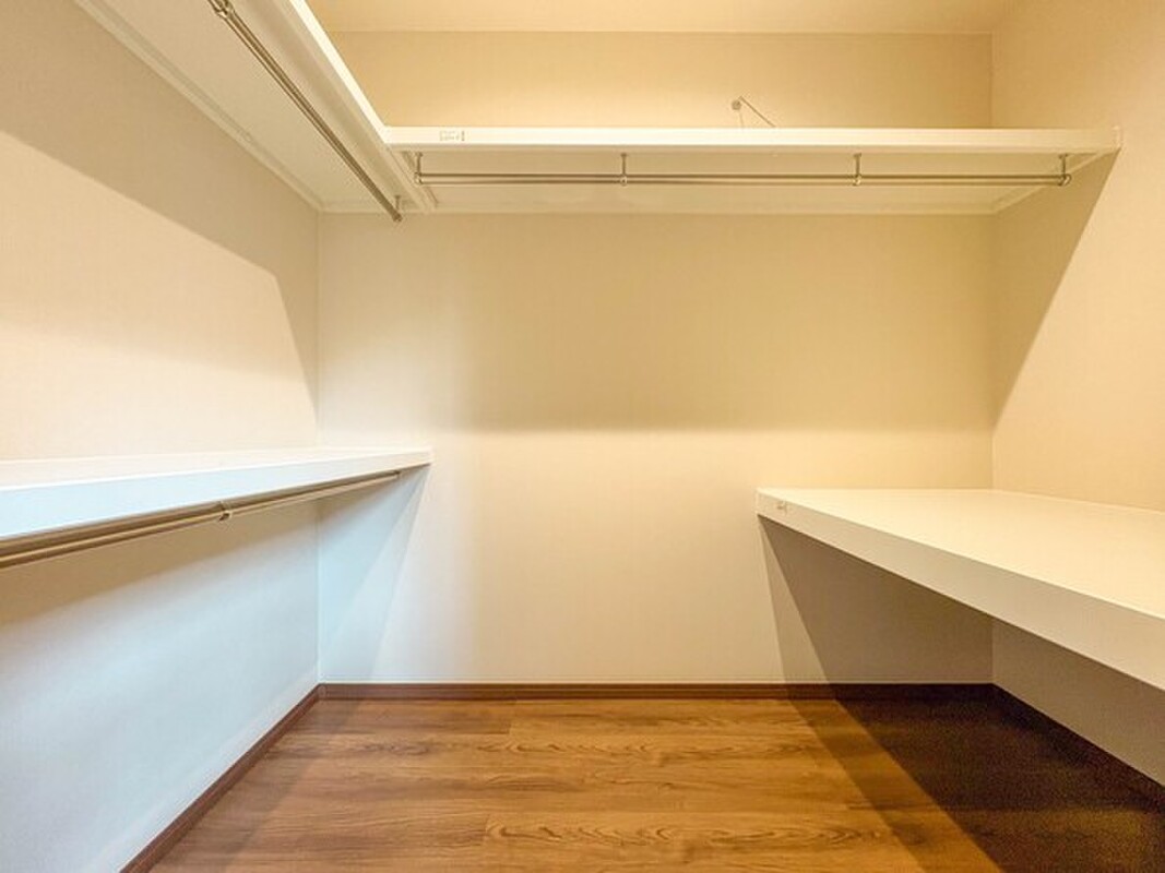 WICのメリットの1つ目は、1箇所にまとめて収納が出来ること。2つ目は、衣替えが必要ないこと。3つ目は、扉が少なくなり室内がスッキリ見えること。