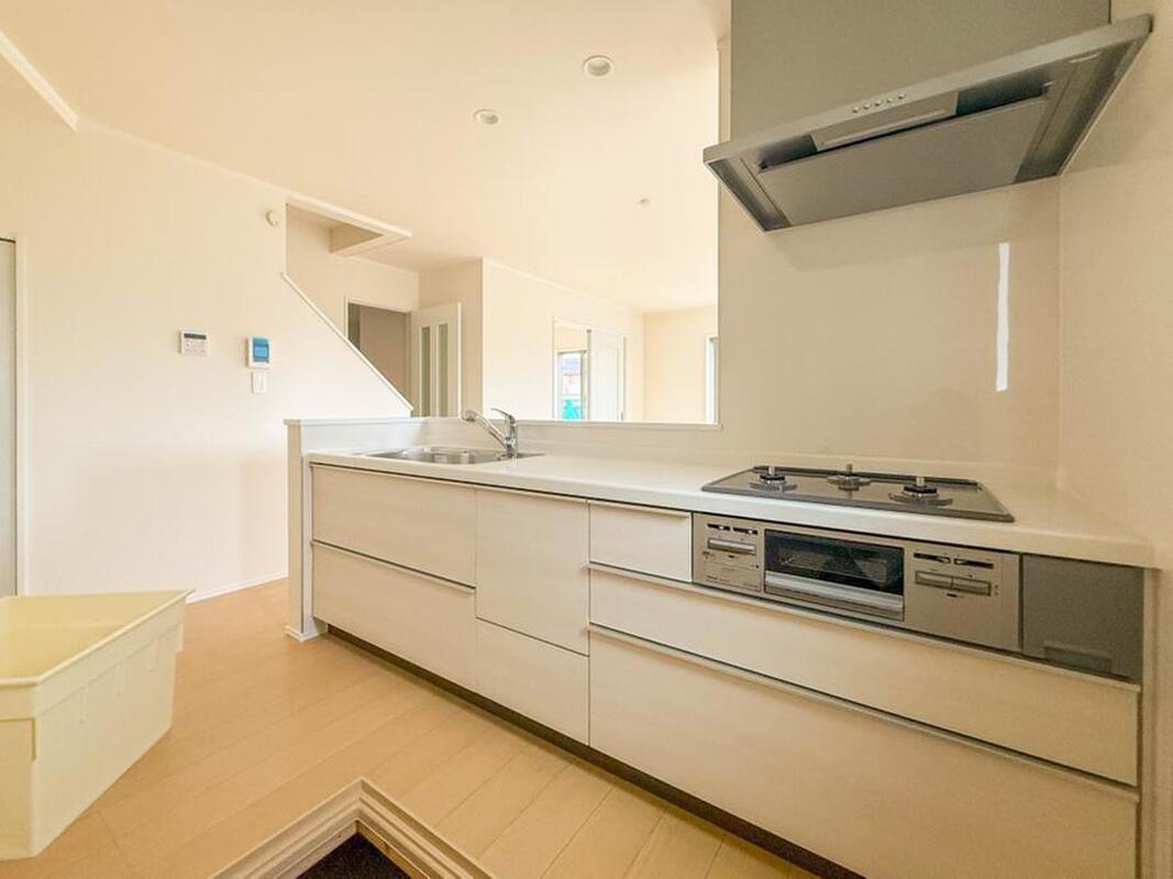 ナチュラルな自然光の中での調理。会話が弾む対面型キッチン。お洒落な食器類を余裕で収納できるスペース。動きやすい女性目線のキッチン動線。これからはお料理をつくる時間が劇的に変わります。